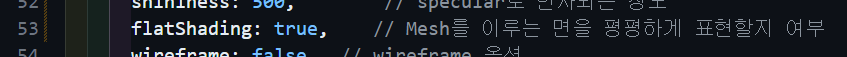 flatShading: false, // Mesh를 이루는 면을 평평하게 표현할지 여부