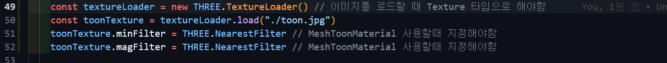 재질은 MeshToonMaterial에서 MeshStandardMaterial로 다시 변경시켰다.