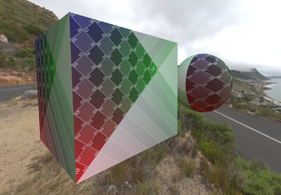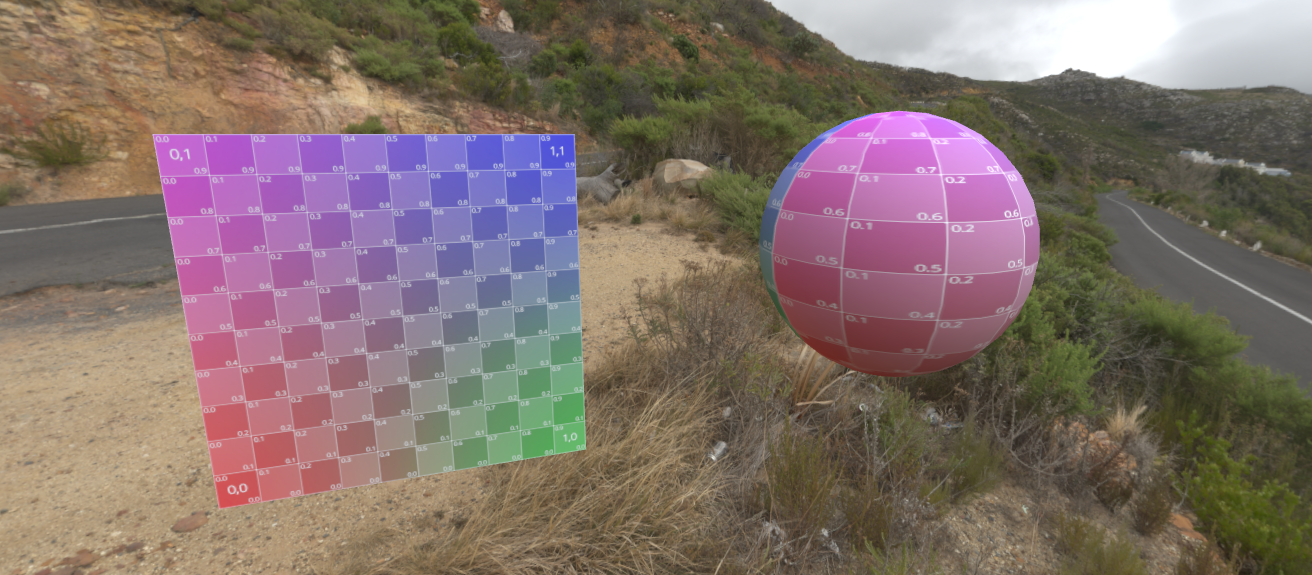 지정된 UV 좌표대로 Box와 Sphere에 Texture가 Mapping 되는 것이다.