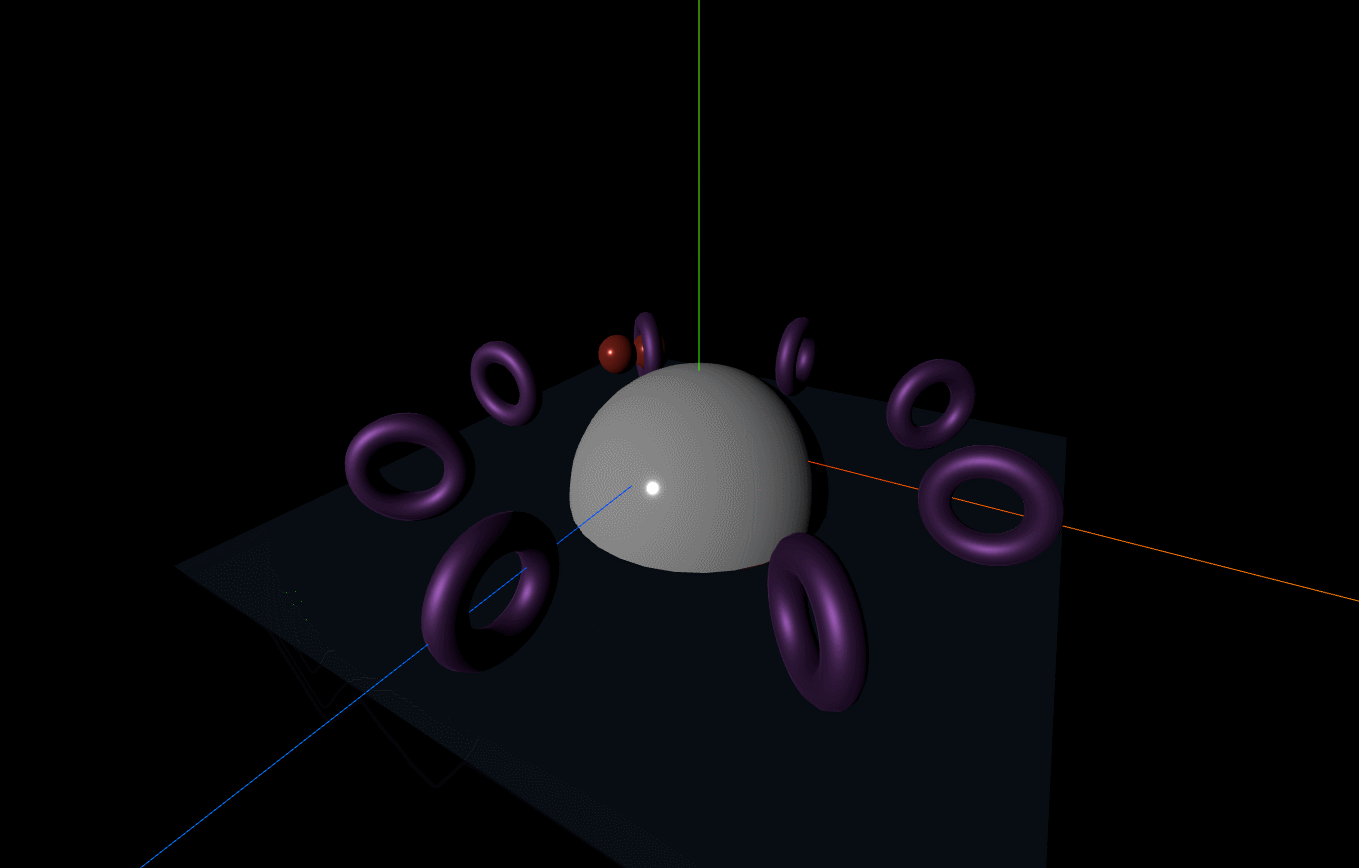 const torusPivot = new THREE.Object3D() // Torus 역시 반 구를 기준으로 회전하면서 8개를 생성하기 때문에 피봇이 필요함