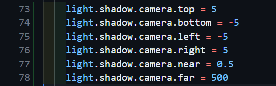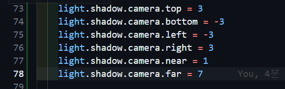위와 같이 그림자를 제공하는 광원들의 shadow 속성의 camera 속성은