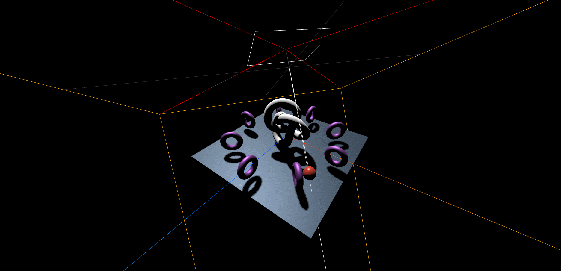 카메라 헬퍼의 육면체(절두체) 내부에 모든 Mesh가 포함되어 그림자가 제대로 나오고 있는 모습이다.